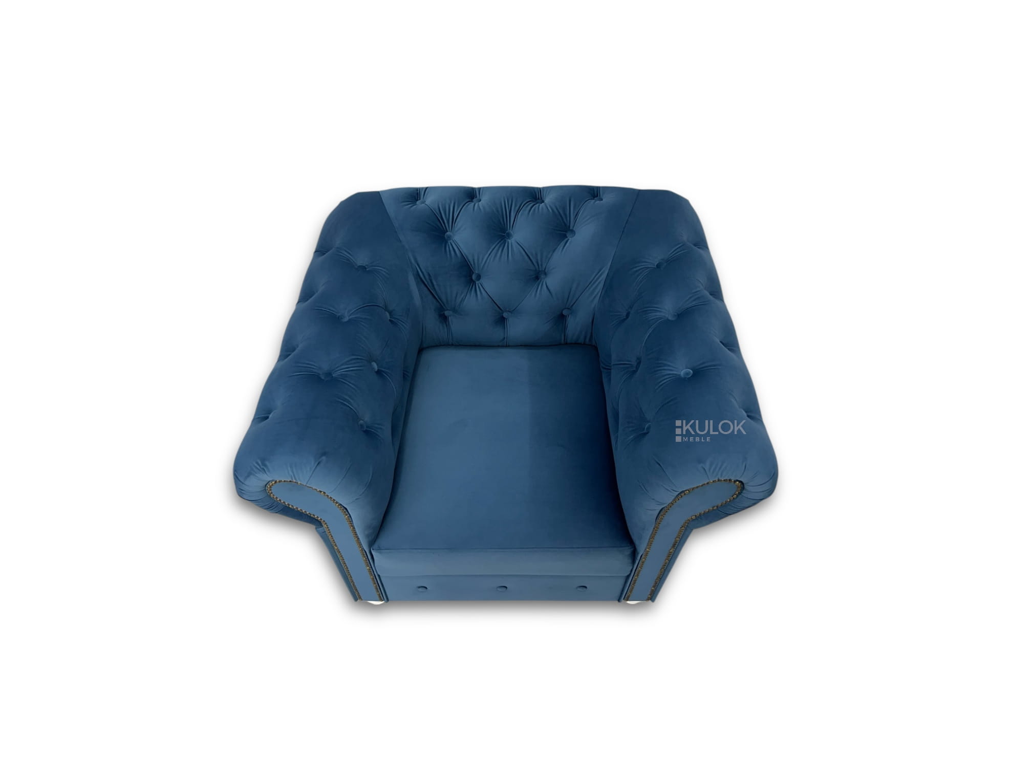 Elegancki fotel Chesterfield Magic Velvet 2233 w kolorze jasno kobaltowym to synonim luksusu i komfortu. Wyjątkowe pikowanie z guzikami, ćwieki w odcieniu starego złota oraz toczone, białe nogi nadają mu klasyczny i ponadczasowy charakter. Wykonany z wysokiej jakości tapicerki Magic Velvet 2233, odpornej na ścieranie i przyjemnej w dotyku. Doskonały wybór do salonu, gabinetu lub stylowego wnętrza.