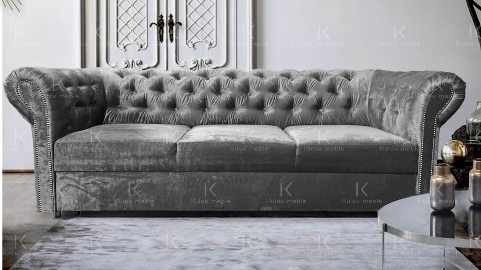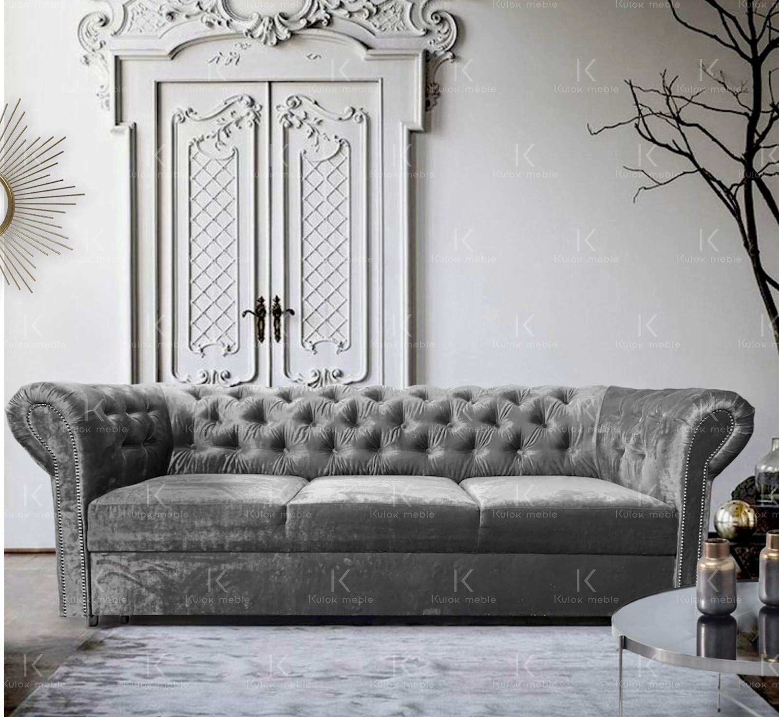 Sofa Chesterfield Monaco Gloss Velvet - srebrna Elegancja w Twoim salonie glamour.