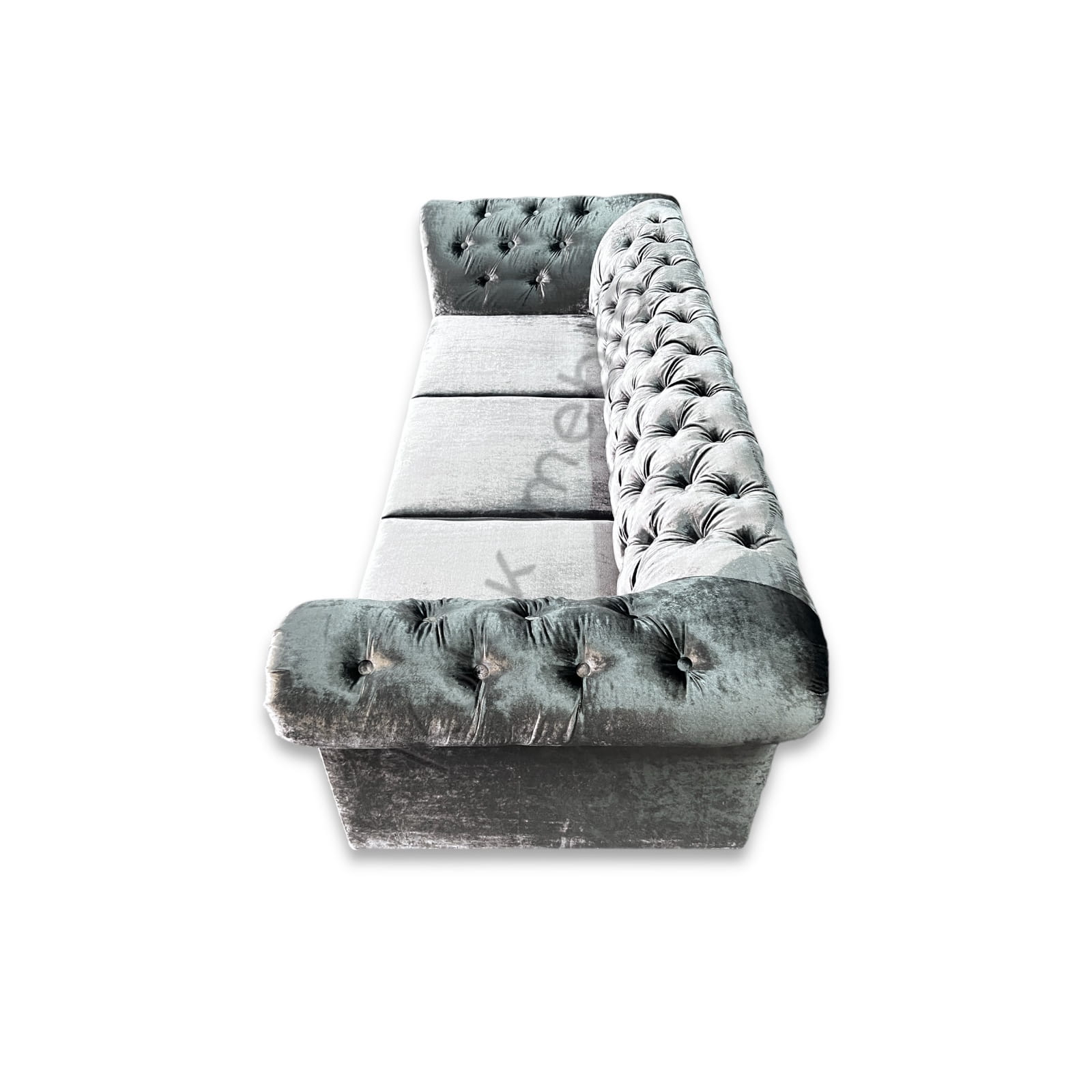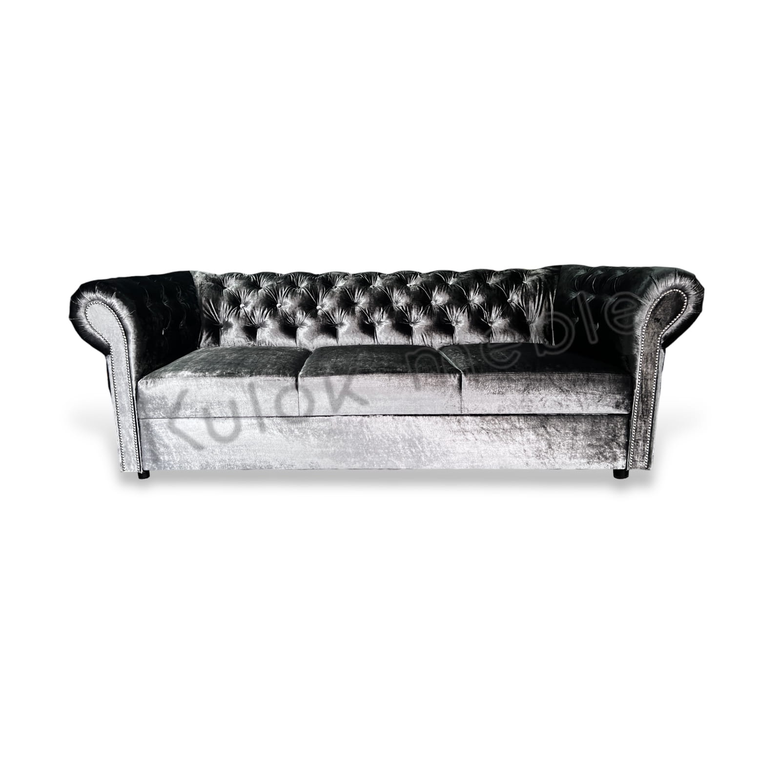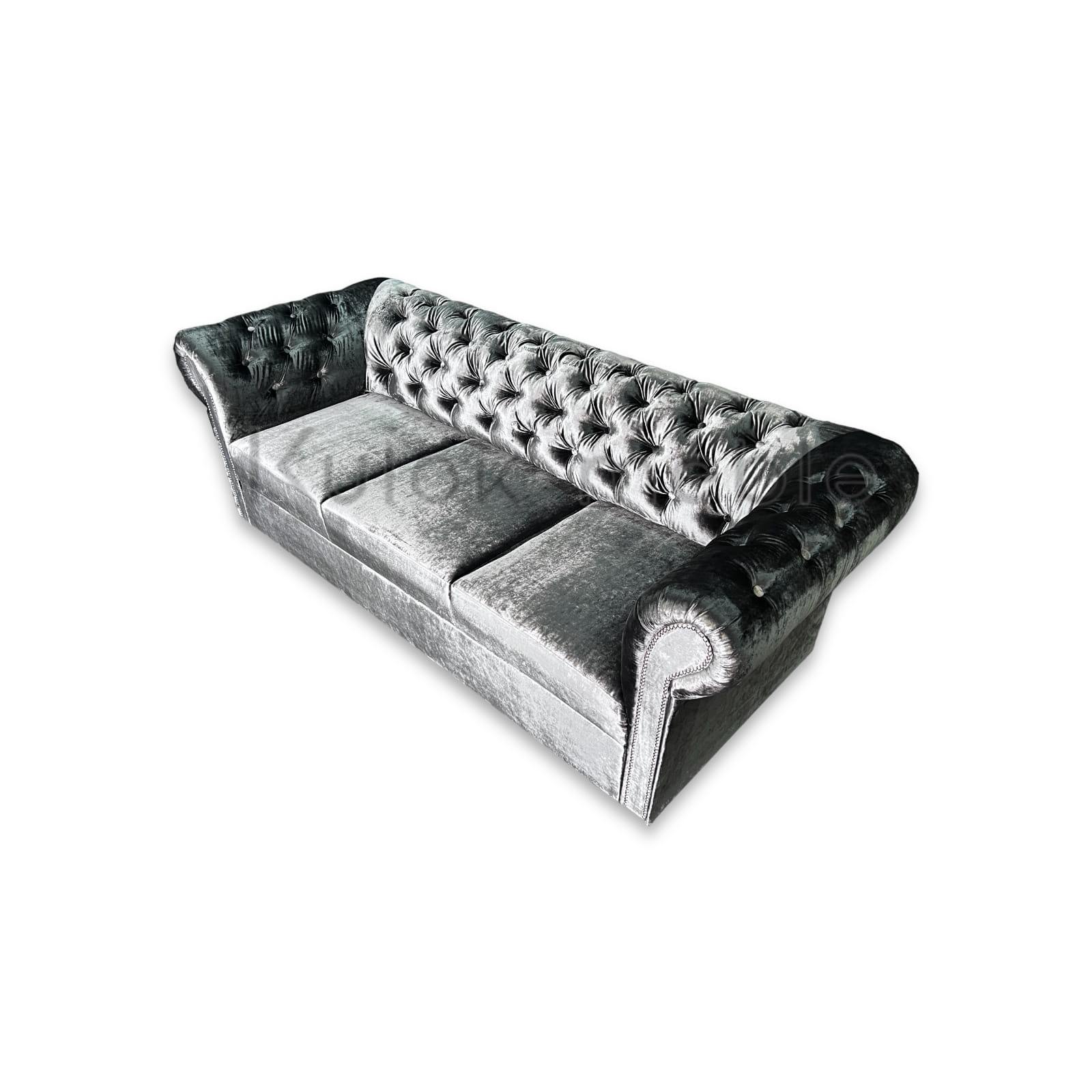 Kanapa srebrna 3os Chesterfield Monaco Gloss Velvet