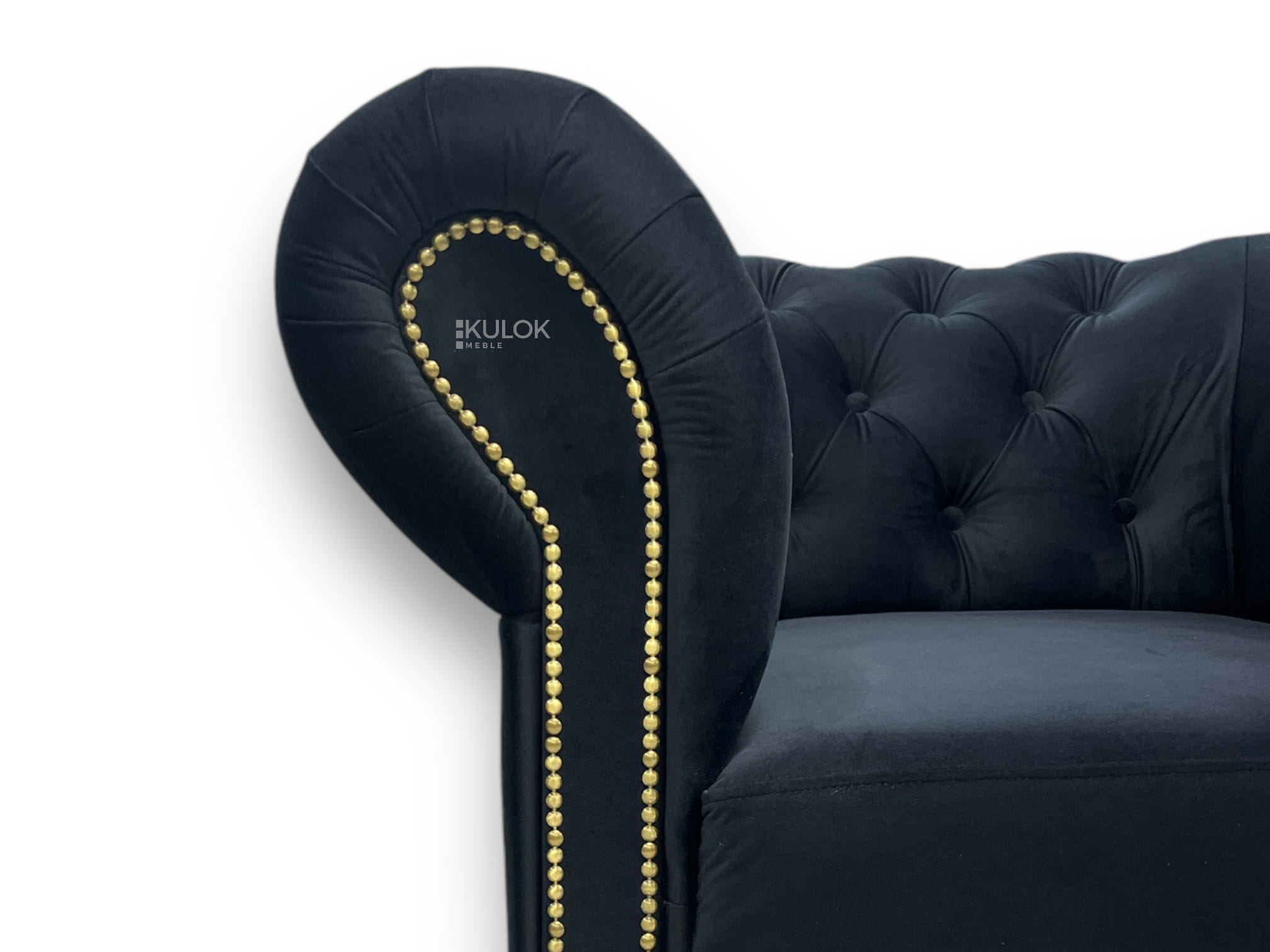 - Luksusowy design – czarny welur i mosiężne ćwieki dodają elegancji.