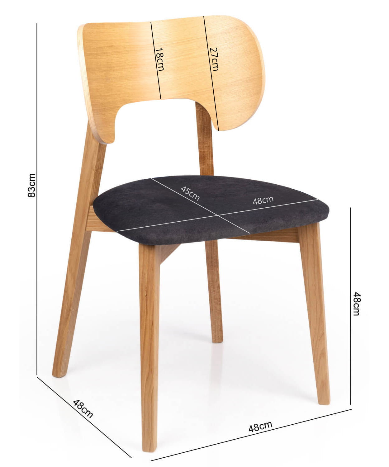 - Podane wymiary mogą się różnić +/- 2cm. Prezentowane na zdjęciu krzesło posiada wybarwienie drewna w kolorze orzech.