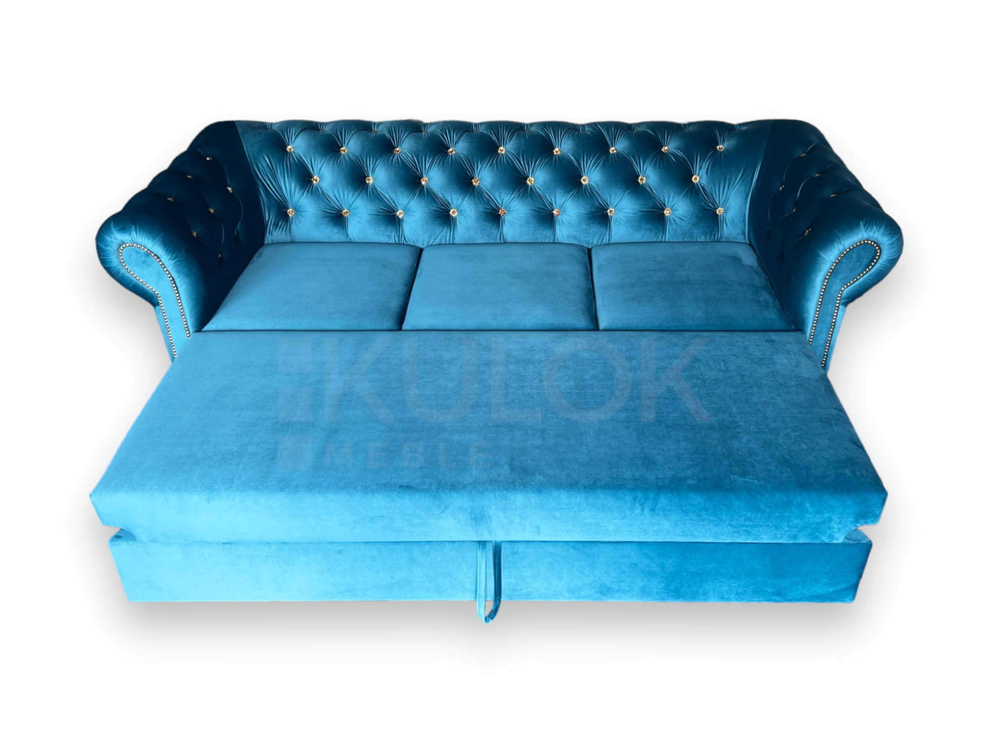 Luksusowa Sofa Chesterfield Tokio 3 z Funkcją Spania - Niebieska Tkanina
