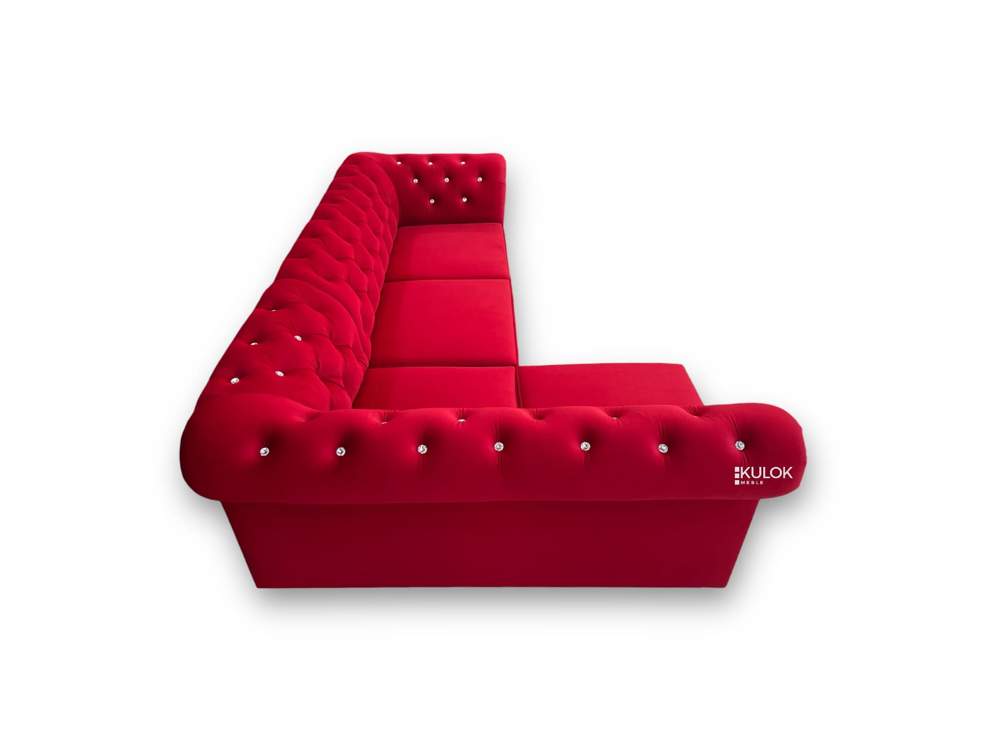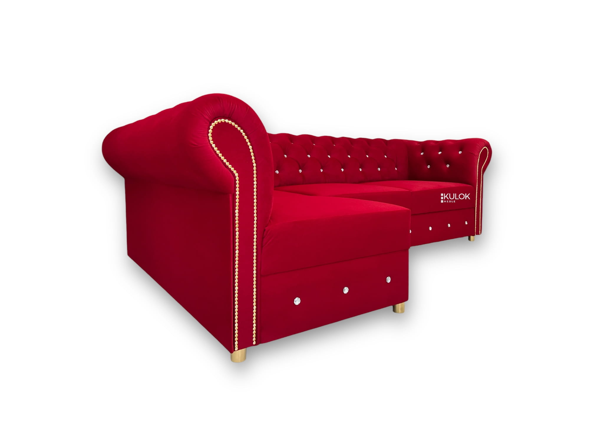 Jeśli szukasz ekskluzywnego narożnika w stylu glamour, który zachwyci gości i zapewni wygodę na co dzień, to Narożnik Chesterfield Primavera jest stworzony właśnie dla Ciebie! Ten elegancki narożnik w królewskiej czerwienito dzieło polskiego rzemiosła meblarskiego, wykonane z najwyższej jakości materiałów. Stylowa tkanina Smart Velvet 216.41 o głębokim, szlachetnym kolorze i złote dodatki tworzą ponadczasowy klimat luksusu i komfortu.