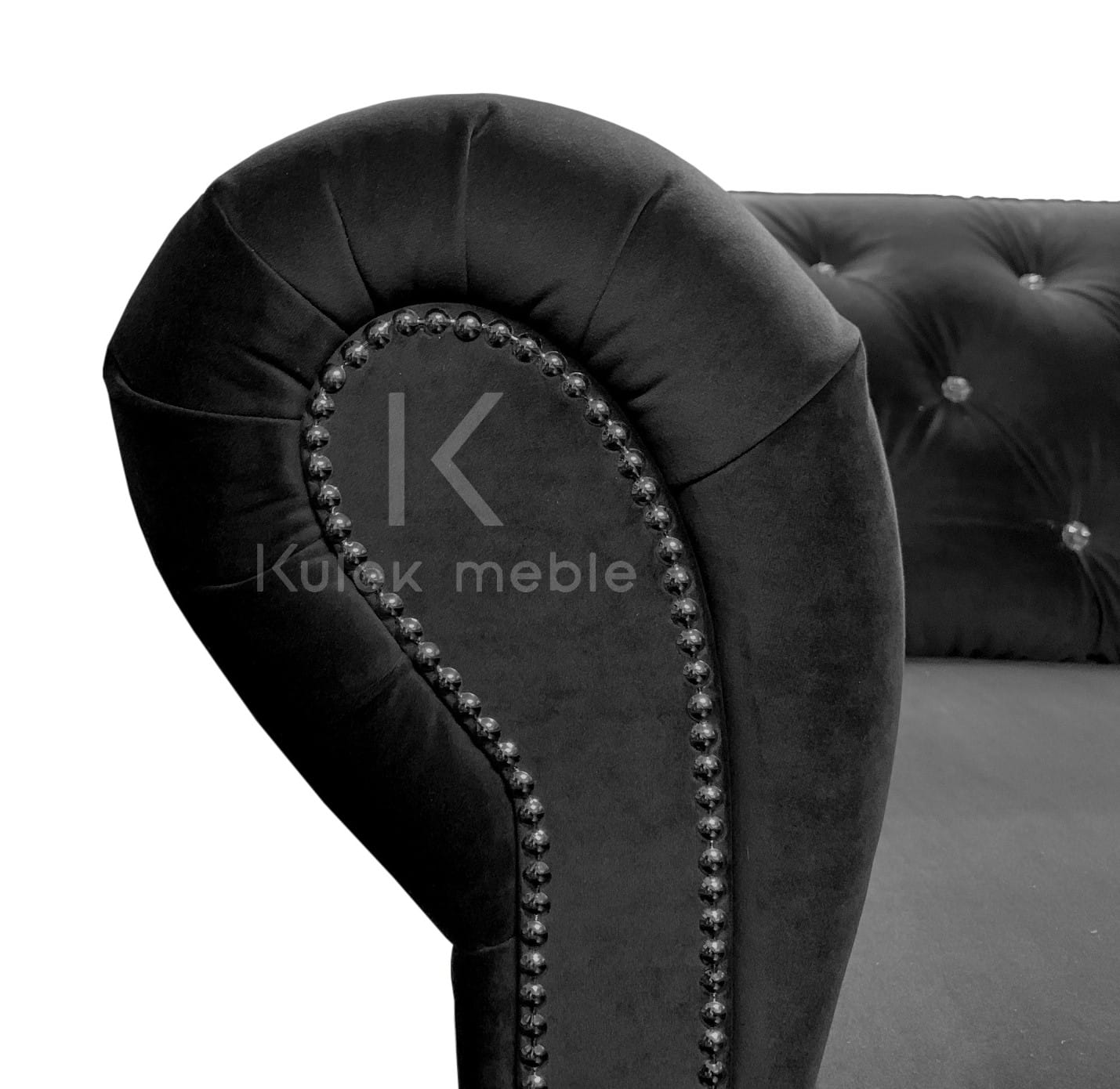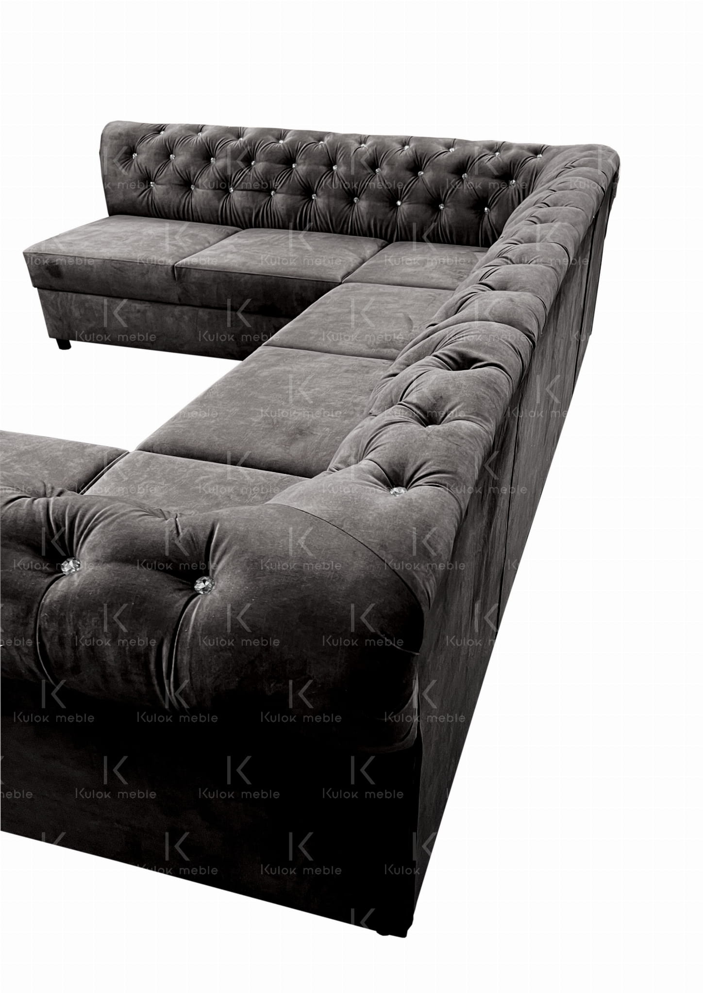 Narożnik Chesterfield U Beleverde XXL - czarny Venus Velvet 2923 z kryształkami