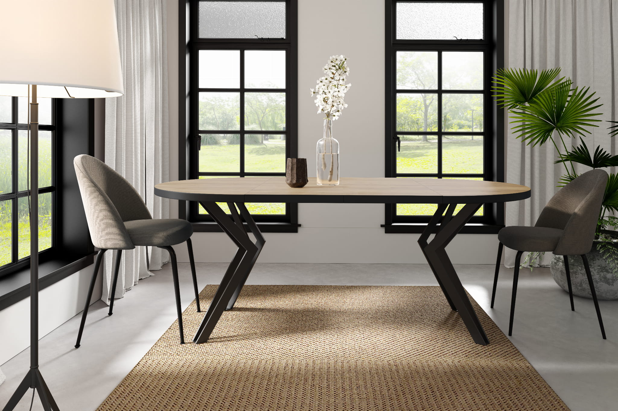 Okrągły Stół Abba to idealna propozycja do kuchni czy salonu. Idealny zarówno na romantyczną randkę przy okrągłym blacie, jak i do uczczenia ważnych wydarzeń w większym gronie po rozłożeniu. Masywna, lecz lekko wyglądająca konstrukcja nadaje pomieszczeniu dwojaki charakter, wpisując się zarówno w industrialny, jak i kobiecy styl.