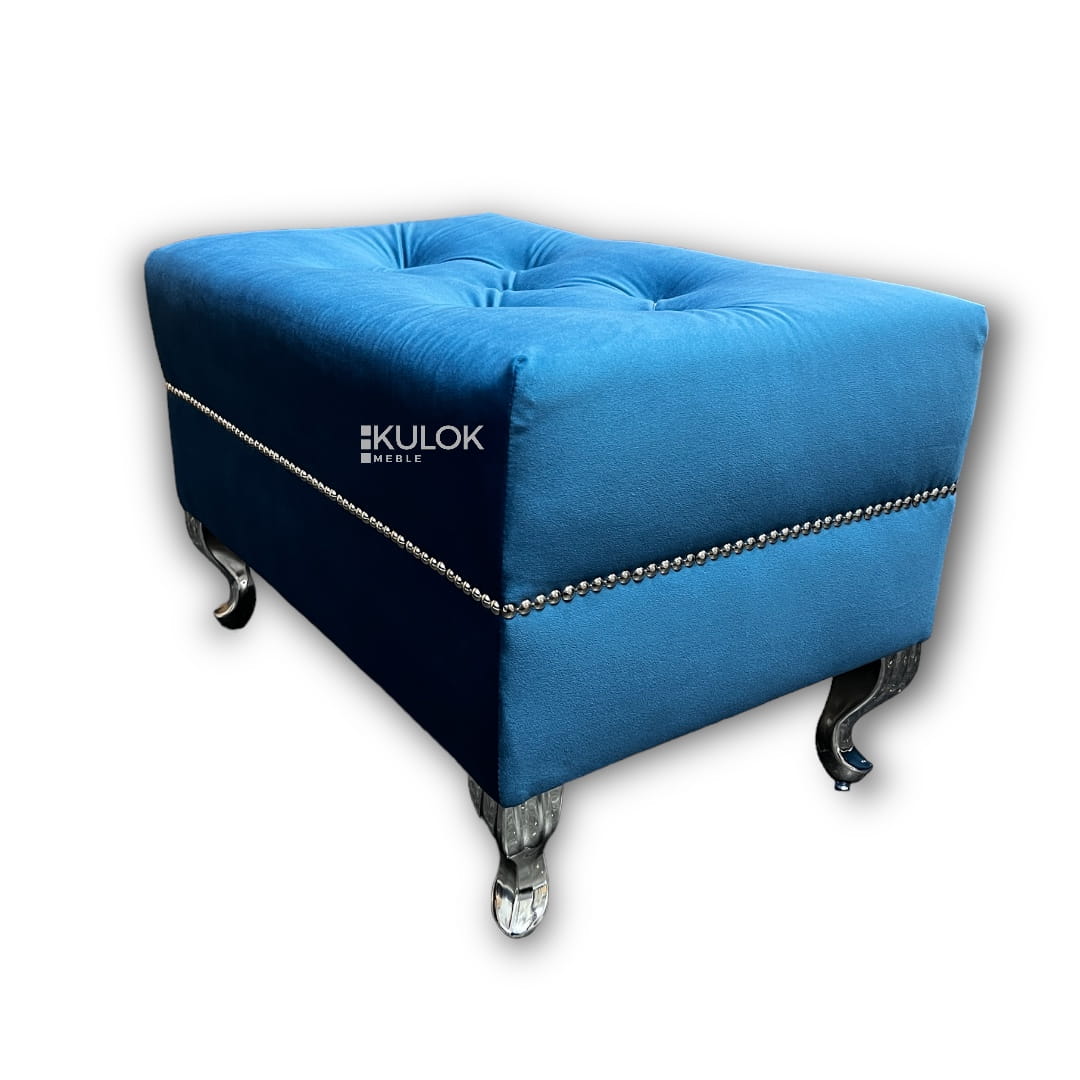 Podnóżek Chesterfield Magic Velvet 2203 w Dark Blue (ciemnoniebieski) z Srebrnymi Dodatkami