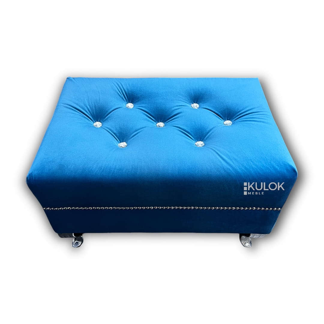 Luksusowy Podnóżek Chesterfield z Kryształkami Swarovski: Dark Blue