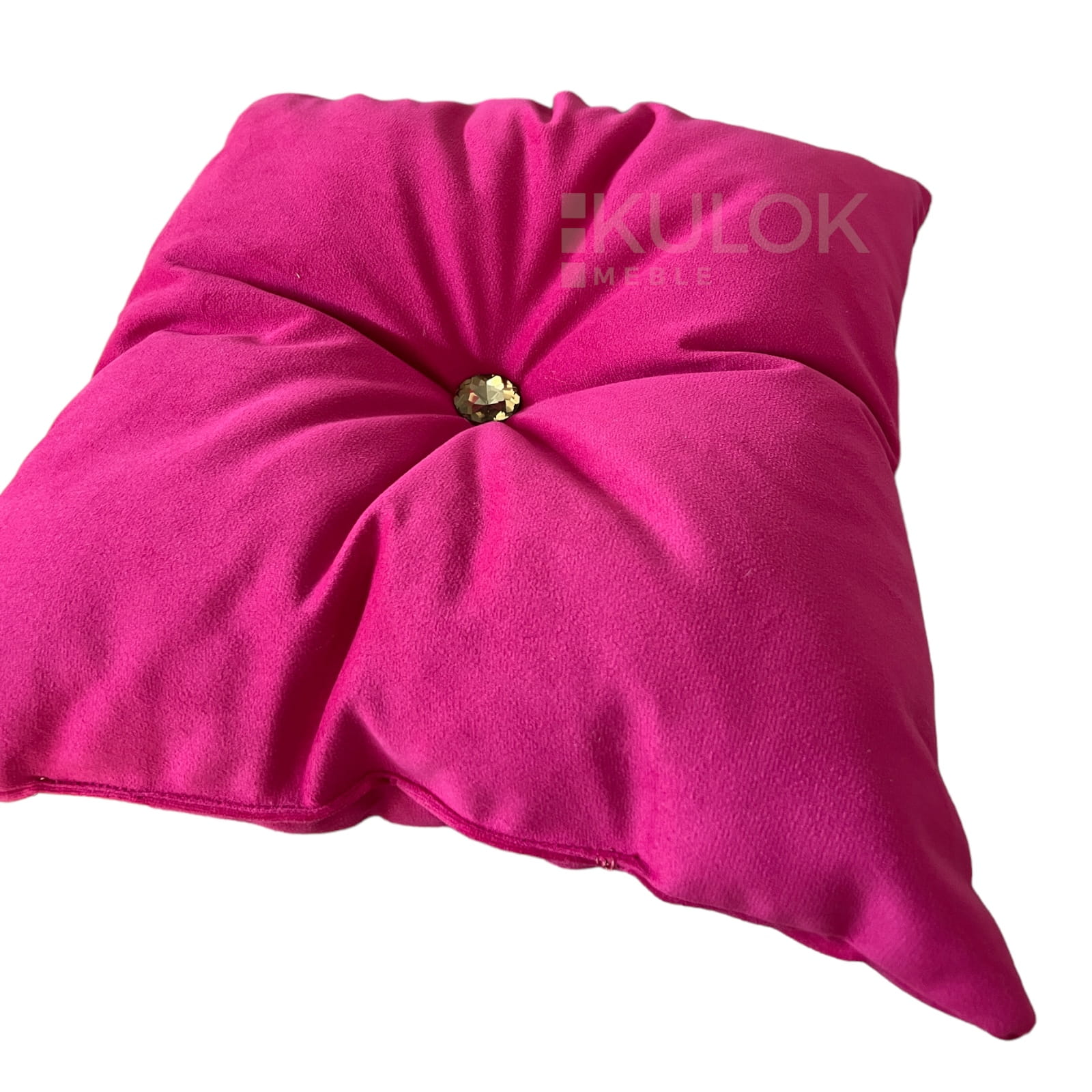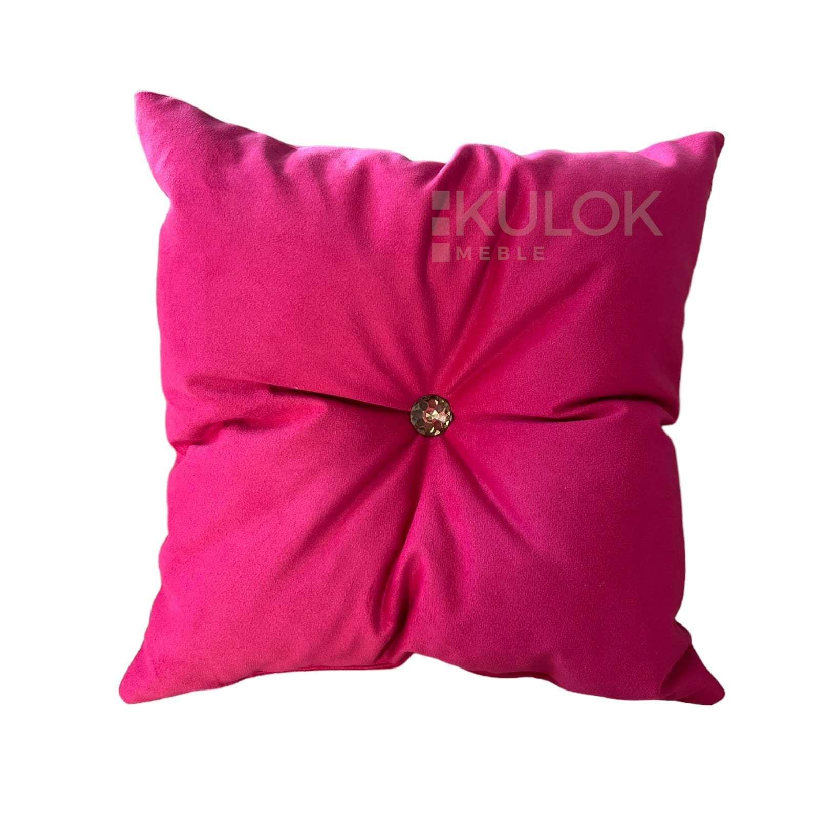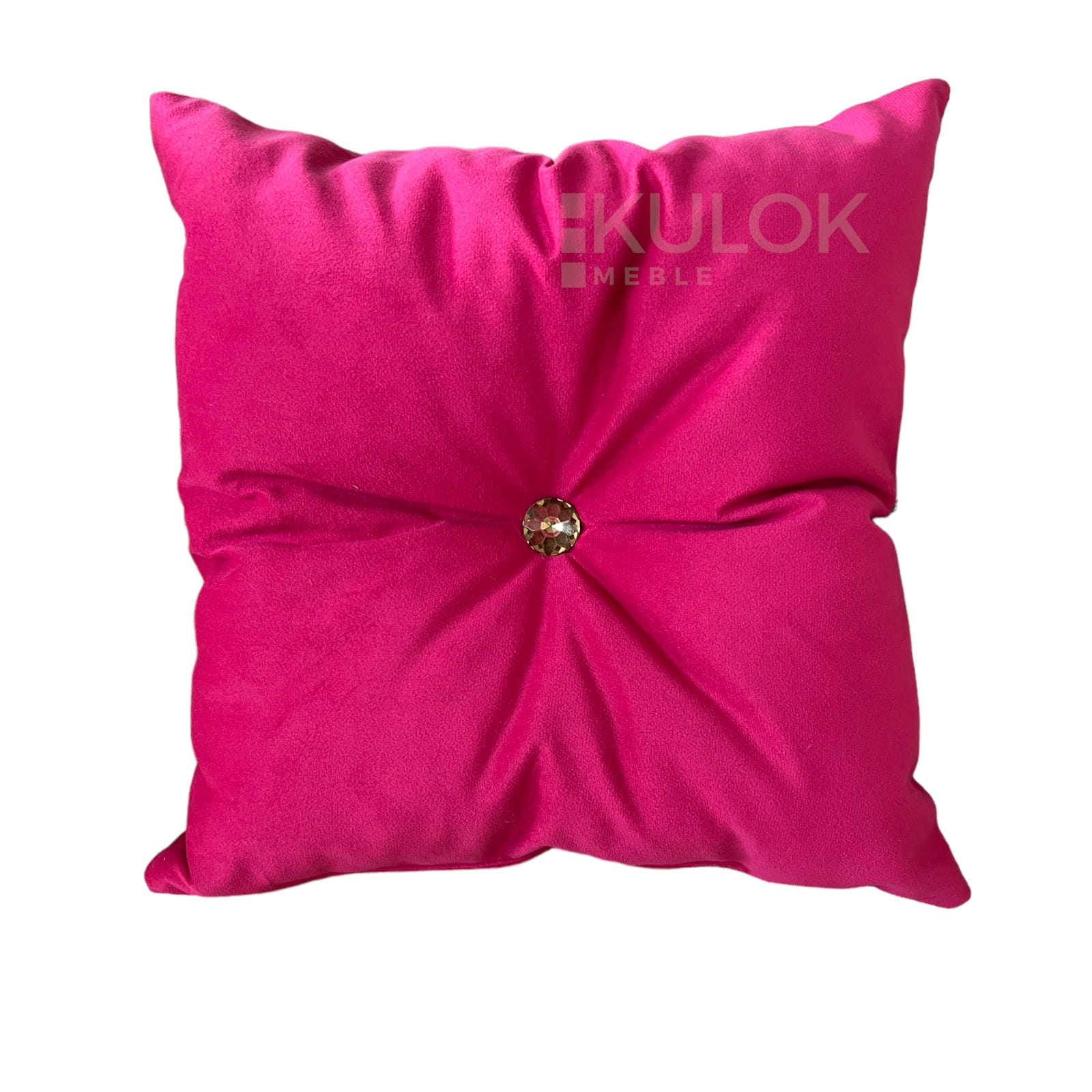 Poduszka Dekoracyjna Fuksja Róż Mocny z Kryształkiem Złotym i Guzikiem Materiałowym