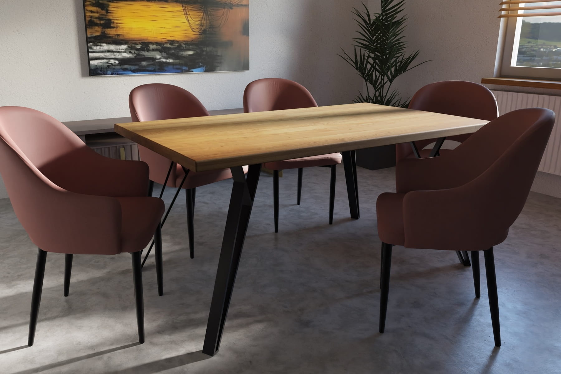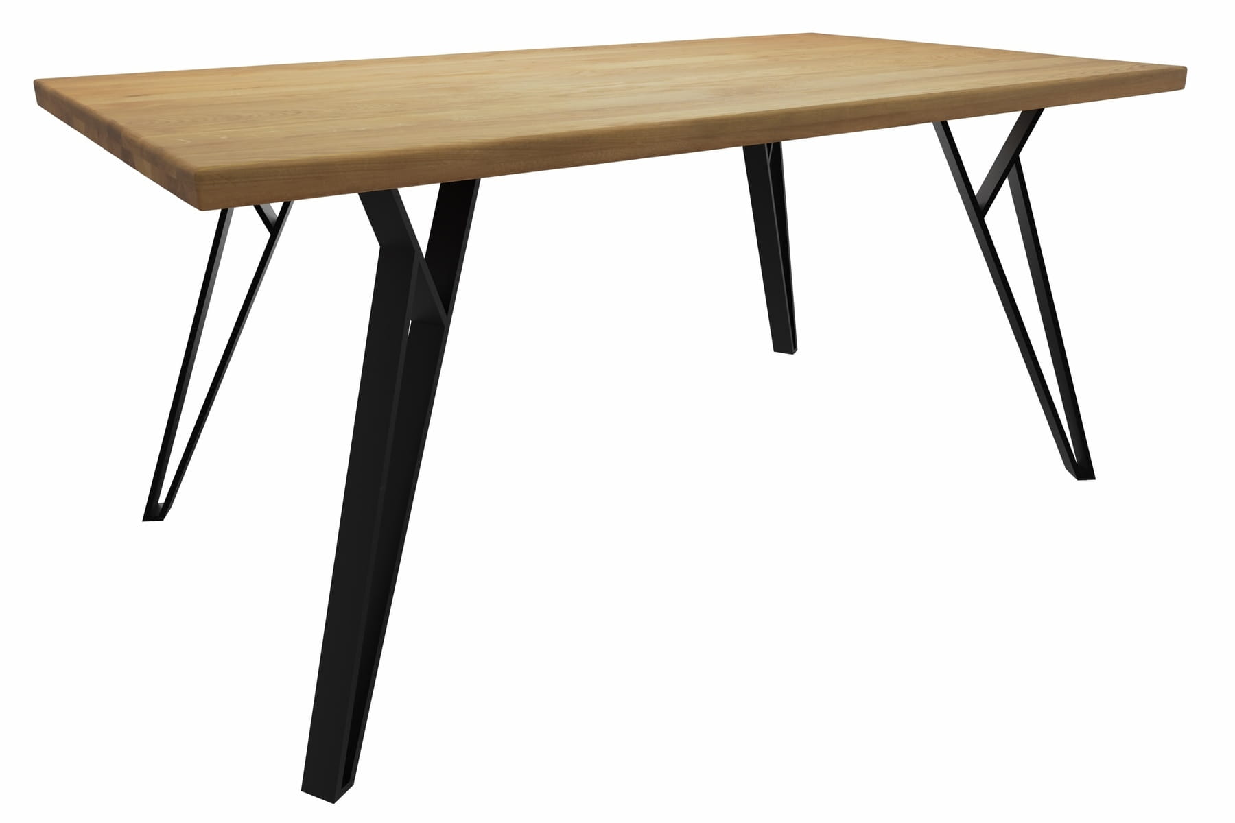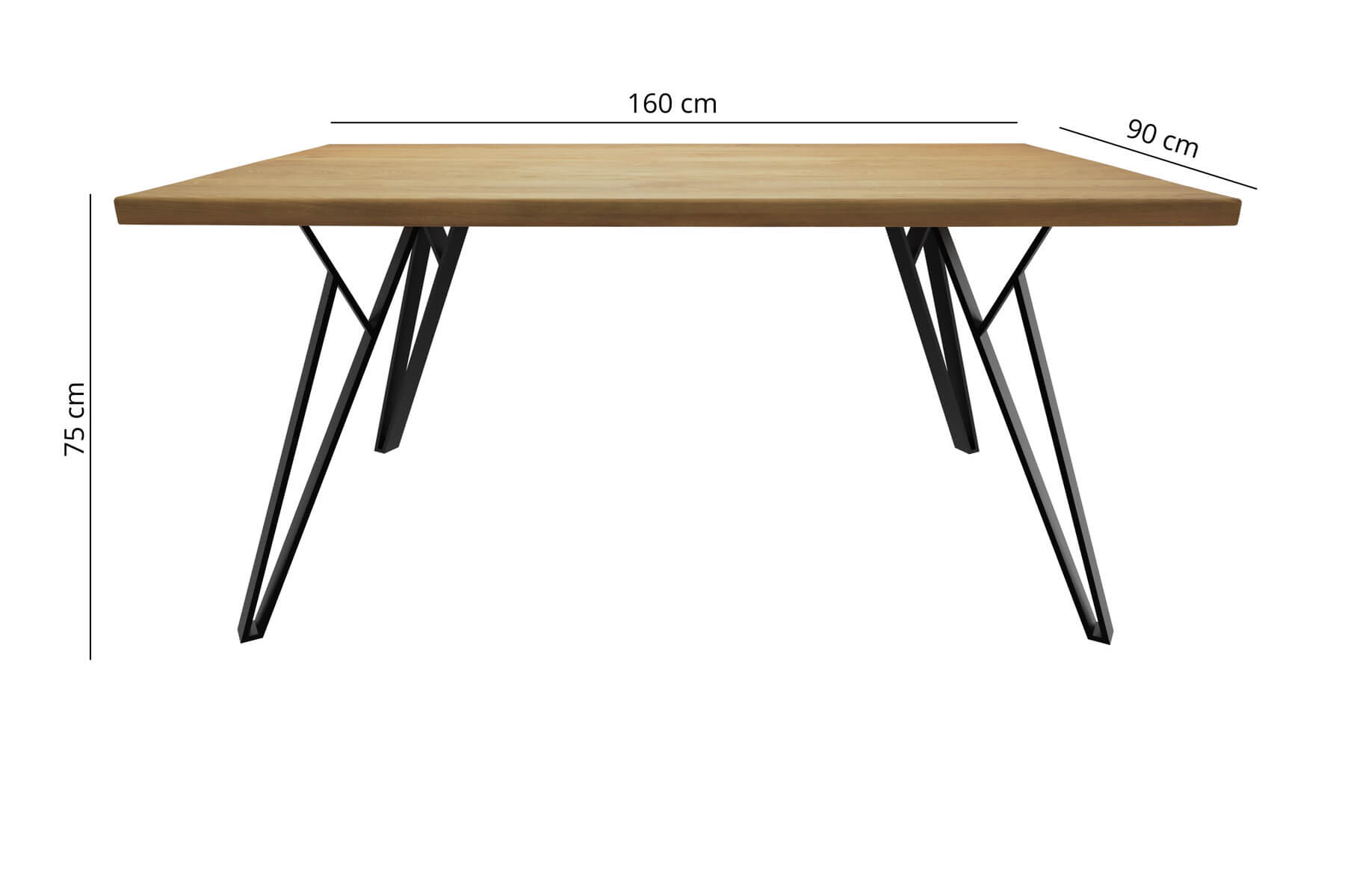 Prostokątny stół dębowy Garda 160x90 w stylu nowoczesnym loft z metalowymi czarnymi nogami. Doskonały wybór do jadalni lub salonu, łączący solidność drewna i industrialny styl. Idealny dla osób szukających nowoczesnych i trwałych mebli.