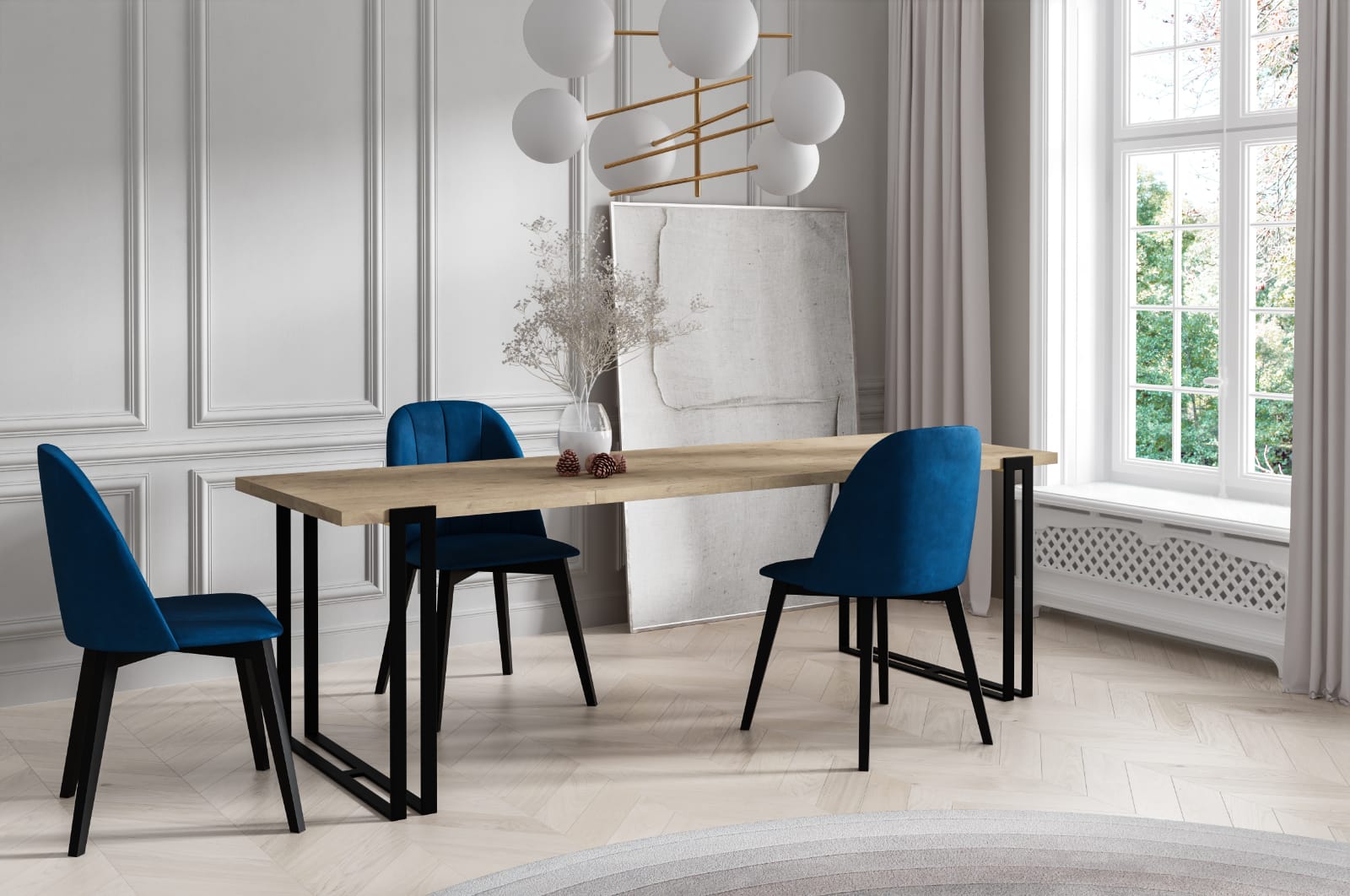 Stół Halland to idealne rozwiązanie do jadalni, kuchni czy salonu, łączące klasyczną elegancję z nowoczesnym designem. Jego funkcja rozkładania i dwie wkładki po 50 cm pozwalają na dostosowanie szerokości stołu do 220 cm, co sprawia, że pomieści całą rodzinę podczas spotkań czy przyjęć. Podwójne nogi nie tylko dodają oryginalności, ale również zapewniają stabilność i solidność całej konstrukcji.