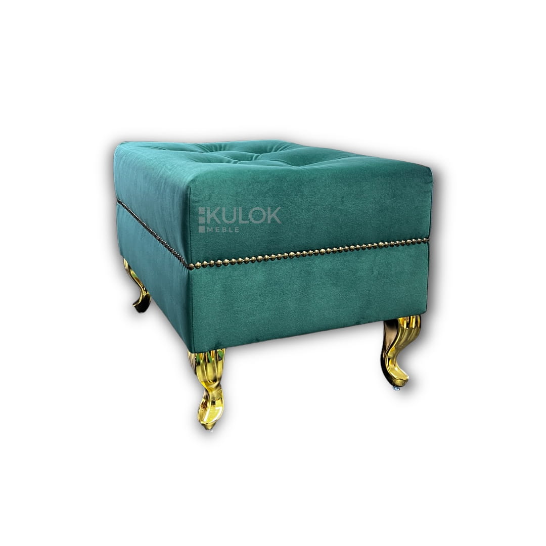Odkryj niepowtarzalny urok naszej pufy Chesterfield Pikowanej w stylu Glamour. Zielony welur premium 2225 nadaje elegancji i luksusu każdemu wnętrzu. Ręcznie pikowana z guzikami materiałowymi, ozdobiona złotymi dodatkami i nóżkami w stylu Ludwik. Idealna harmonia designu, komfortu i najwyższej jakości wykonania. Polska firma, która spełni nawet najbardziej wyrafinowane oczekiwania.