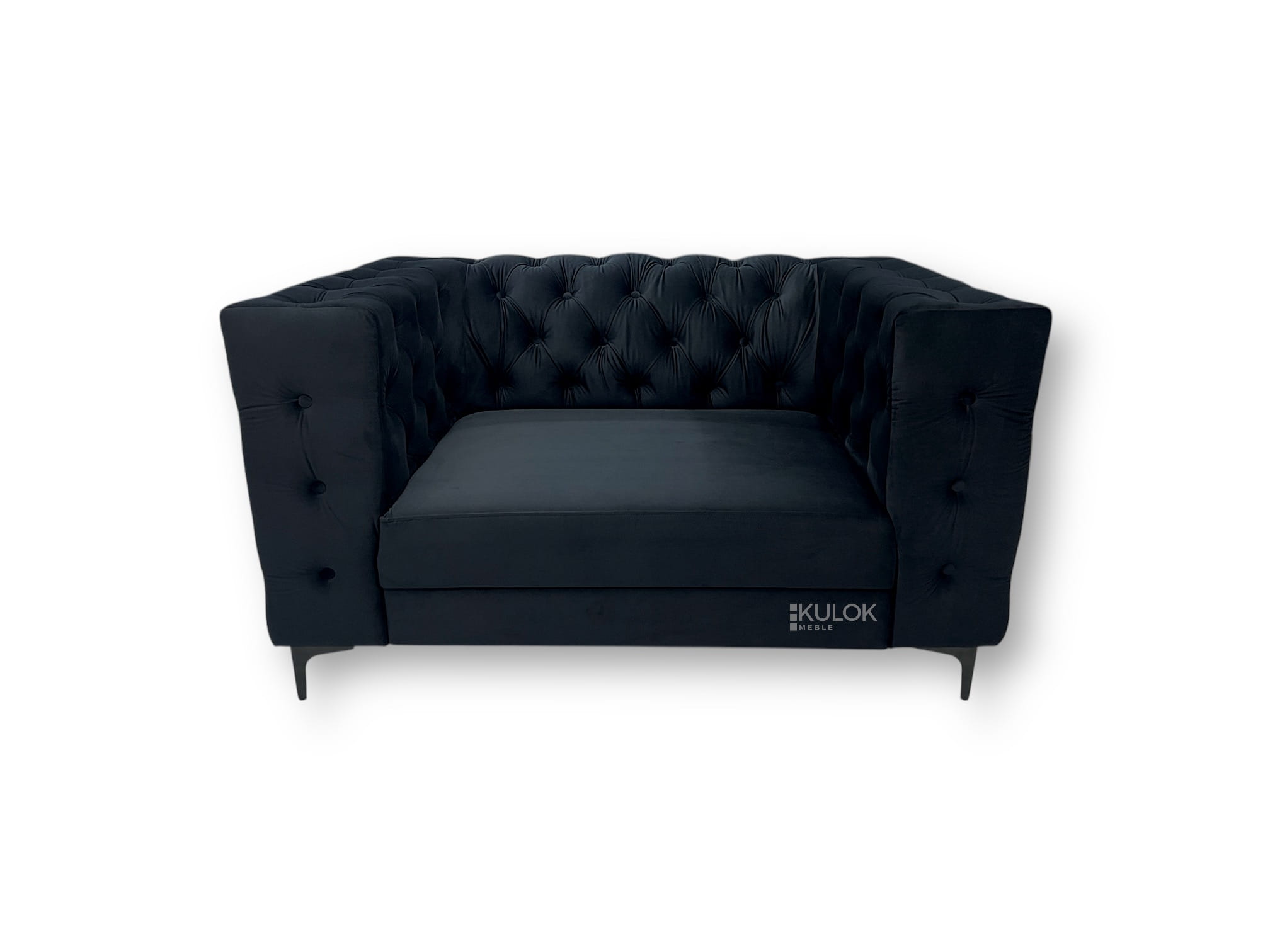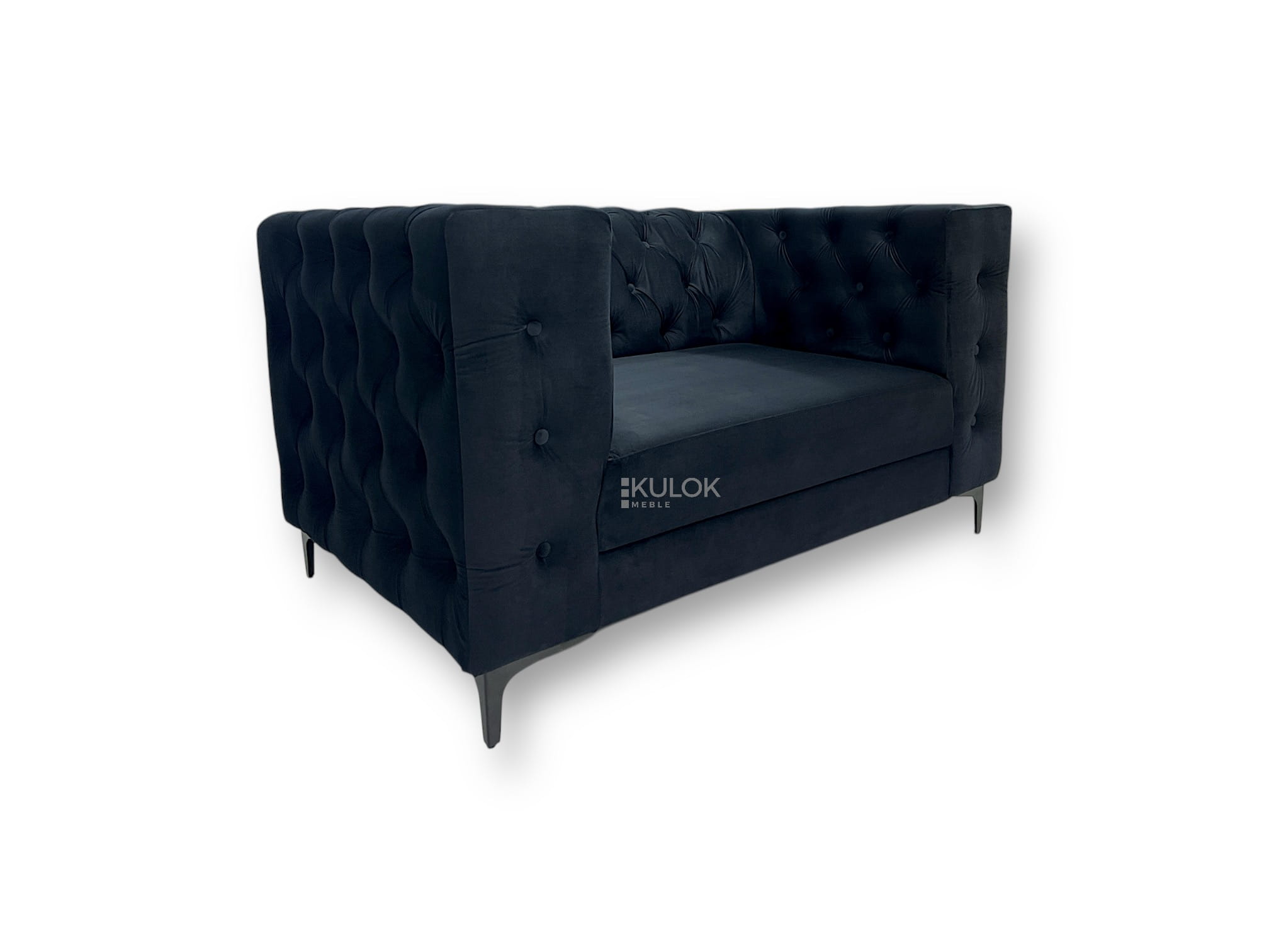 Sofa Manchester 2-osobowa 175 cm – Elegancja w Czerni Magic Velvet 2219, Klasyczne Pikowania, Nowoczesne Metalowe Nogi