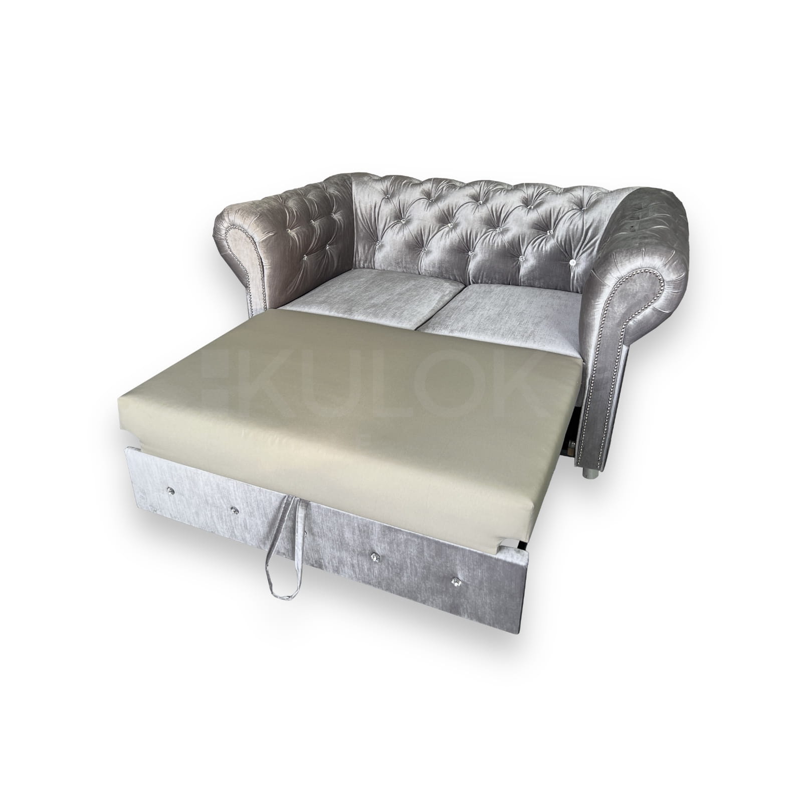 Sofa dwuosobowa z funkcją spania Chesterfield srebrna - Kemer 801