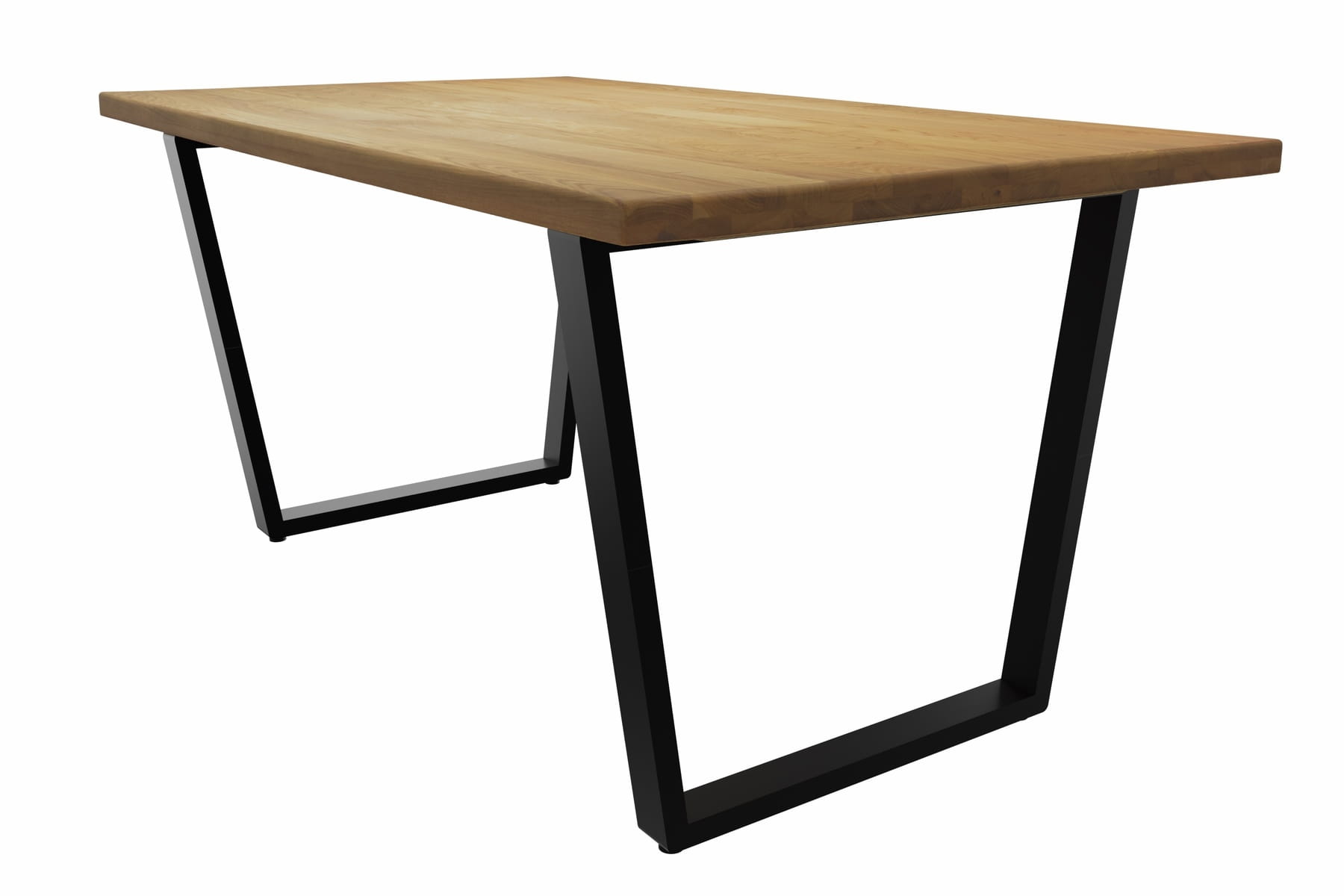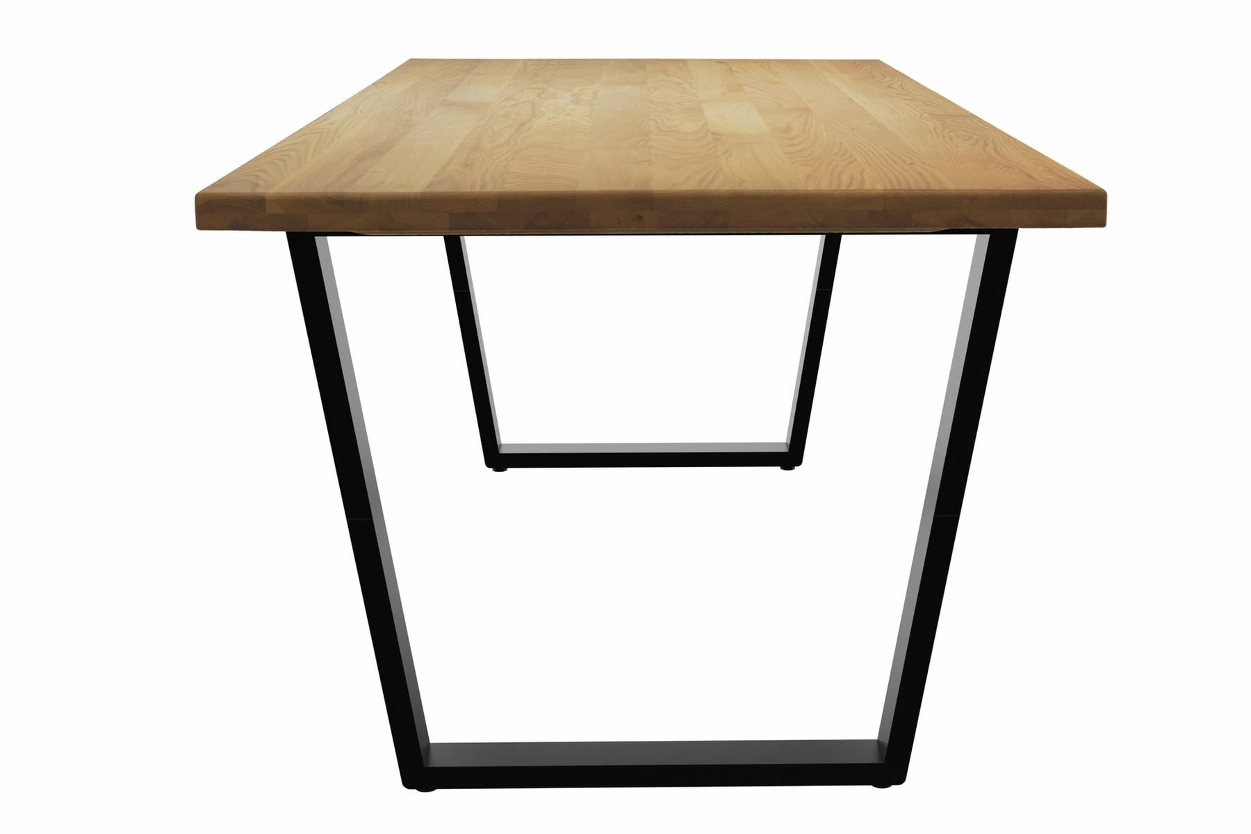 Prostokątny stół dębowy Lugano 160x90 z solidnym blatem z litego drewna i metalowymi, czarnymi nogami. Idealny do wnętrz w stylu loftowym. Wyjątkowe połączenie naturalnego drewna i industrialnego designu, idealne do jadalni lub salonu.
