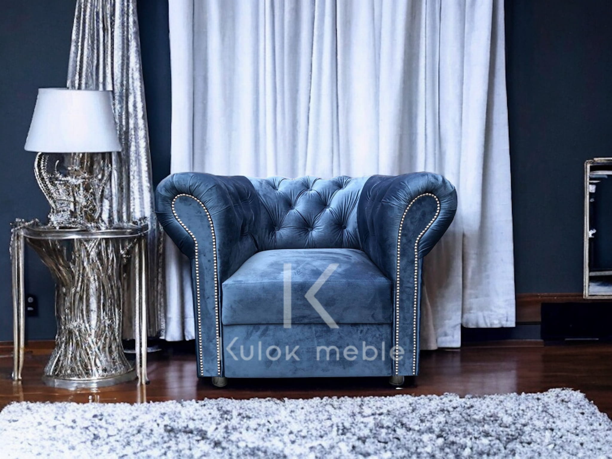 Stylowy fotel tradycyjny Chesterfield pikowany z Magic Velvet 2233