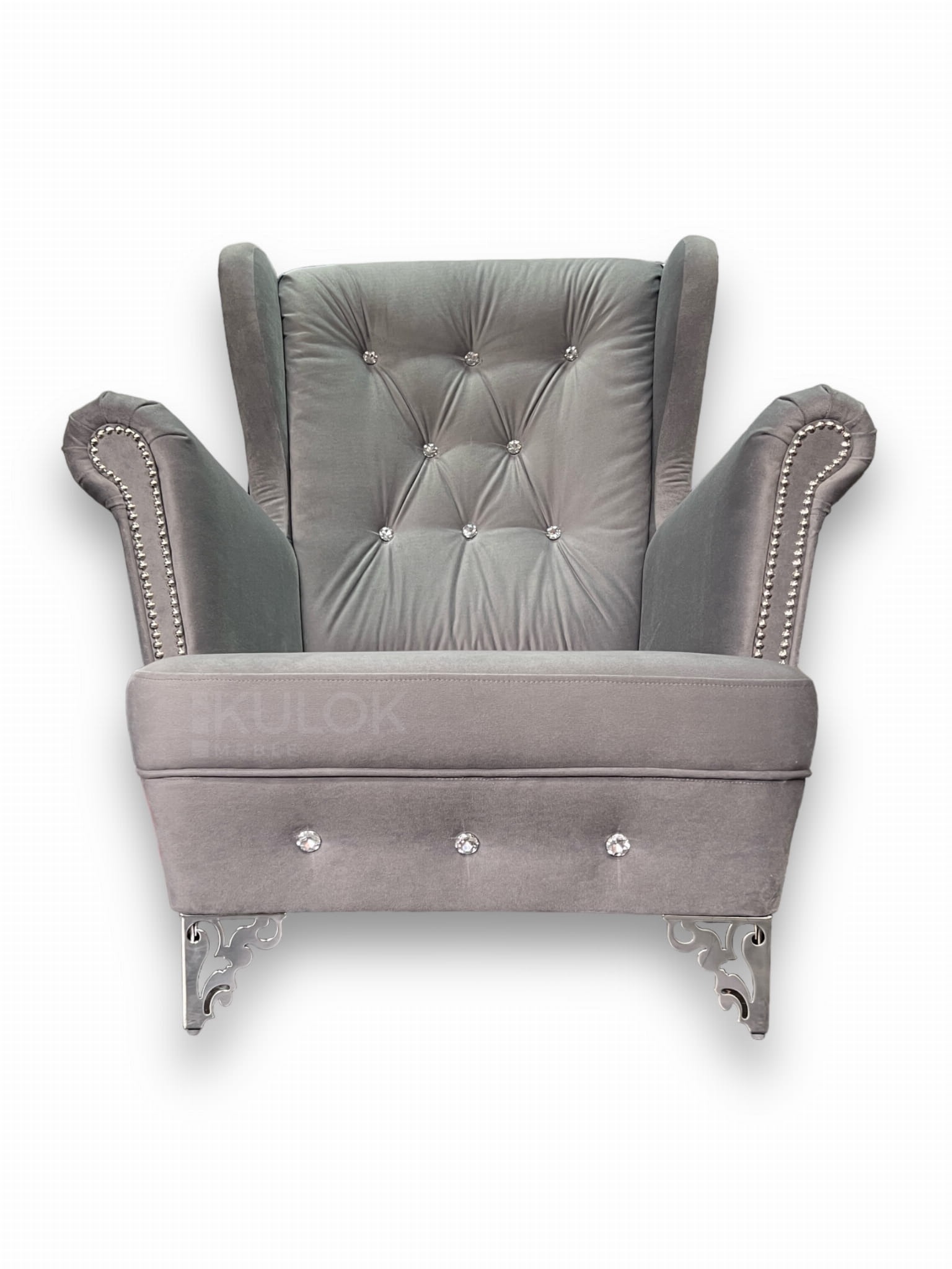 Wygodny fotel Uszak z kryształkami i srebrnymi ażurowymi nogami - Granada 2727
